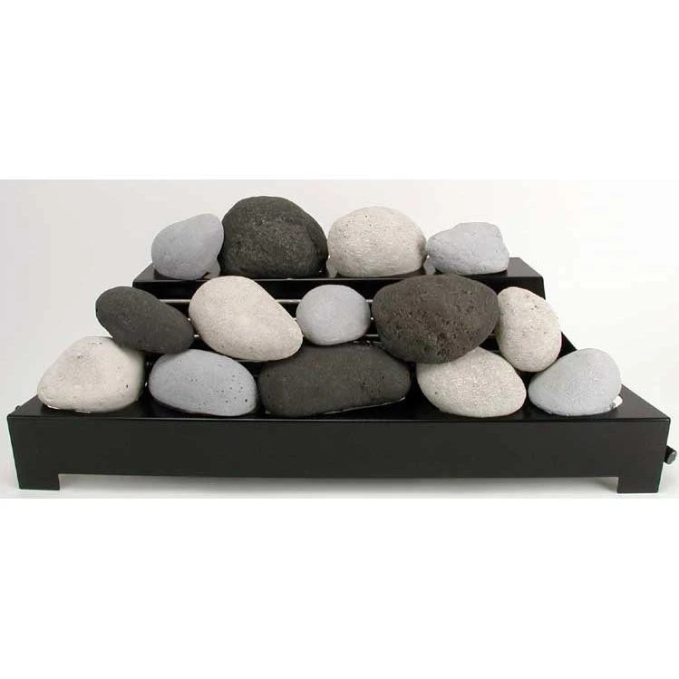 AFS30-RE-B-BX-LP Rasmussen 30 Inch Black/Light Grey/White ALTERNA Vent Free Propane Gas FireStones With Black Chassis And Variable Flame Remote