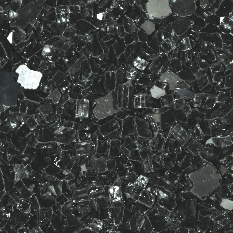 1/4-in Black Reflective Fireglass is available in our Premium Collection. It is one of our most popular fireglass colors from our Premium Collection. Black Reflective is our top recommended color when using L.P (liquid propane) due to carbon soot that may build up over time however is not noticeable on the black fireglass. We recommend mixing Black Reflective with Gold Reflective if you want to add a little flare to the appearance of your fireglass. The reflective properties offer a brilliant sparkle under the mid day sun or a reflection of fire while the flame is burning after dark.