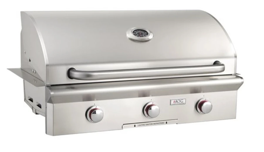 This 36 Inch AOG American Outdoor Grill built-in grill features 304 series stainless construction, 3 main stainless U-burners producing 50000 BTUs, 37 inch x 18 inch (648 square inches) main grilling area. “T” Series requires no power or batteries.