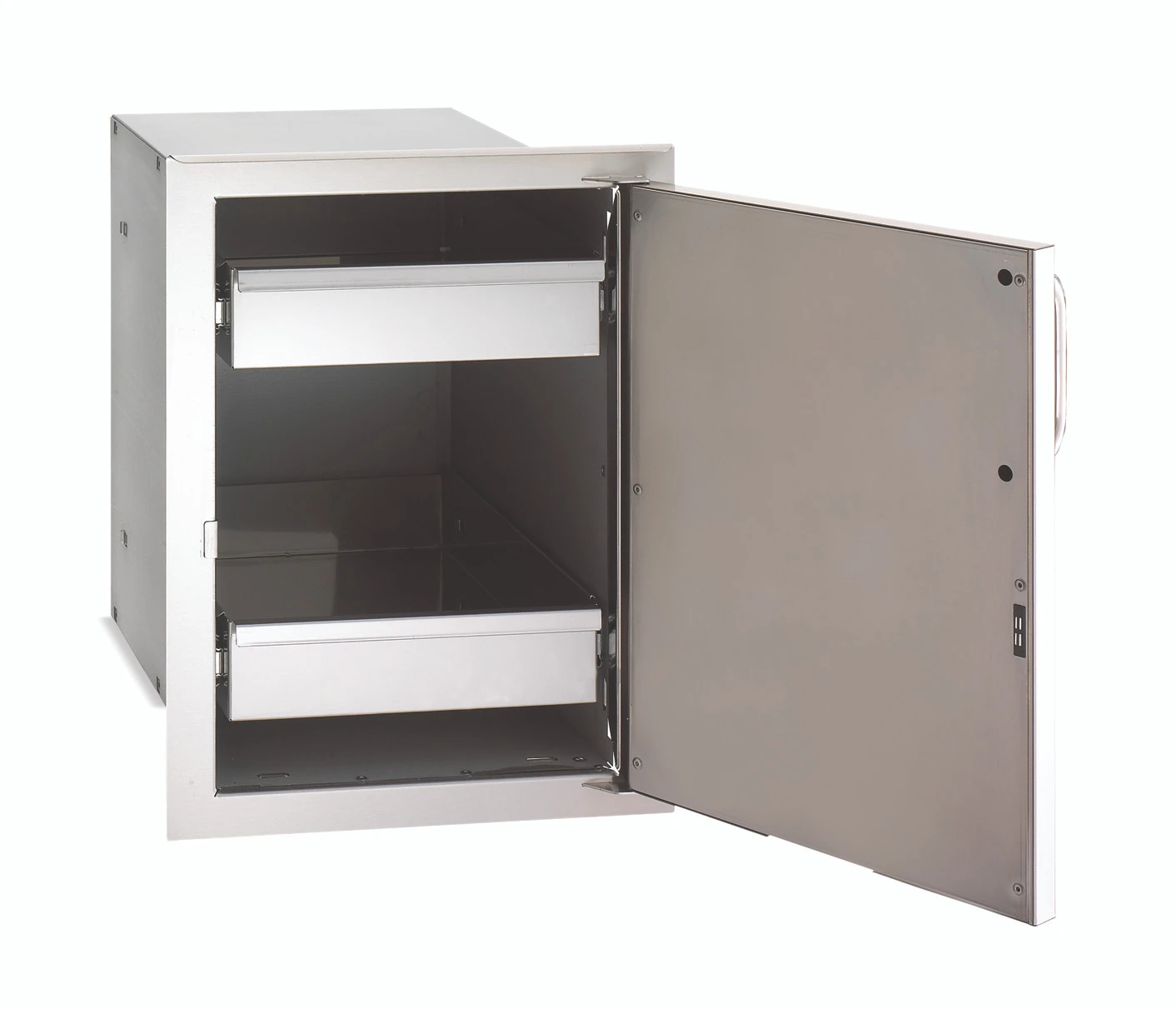 33820-S Firemagic single door dual (double) storage drawers make a nice outdoor kitchen accessory as they are concealed behind a door. Convenient for storing bbq utensils. Part of the Select 3 series Collection.