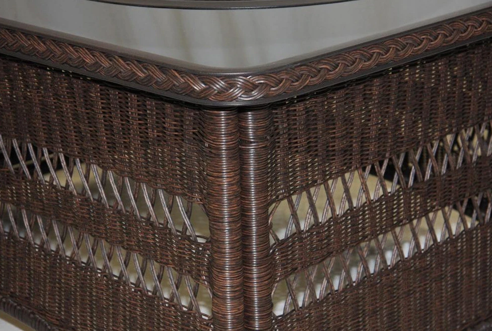 Constructed of aluminum and outdoor-rated resin wicker to prevent rust, its brown earth tone will match many contemporary furniture collections.