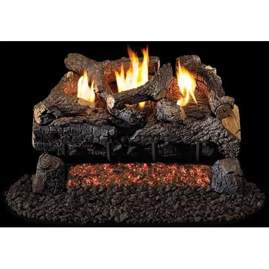 This Peterson Real Fyre gas log set includes: Ceramic Refractory Vent Free Gas Logs, ANSI Certified Vent Free Burner with Pre-assembled Control Valve and ODS Safety System, Custom Grate, Connector Kit, Glowing Embers, Bryte Coals and Lava Granules.Â